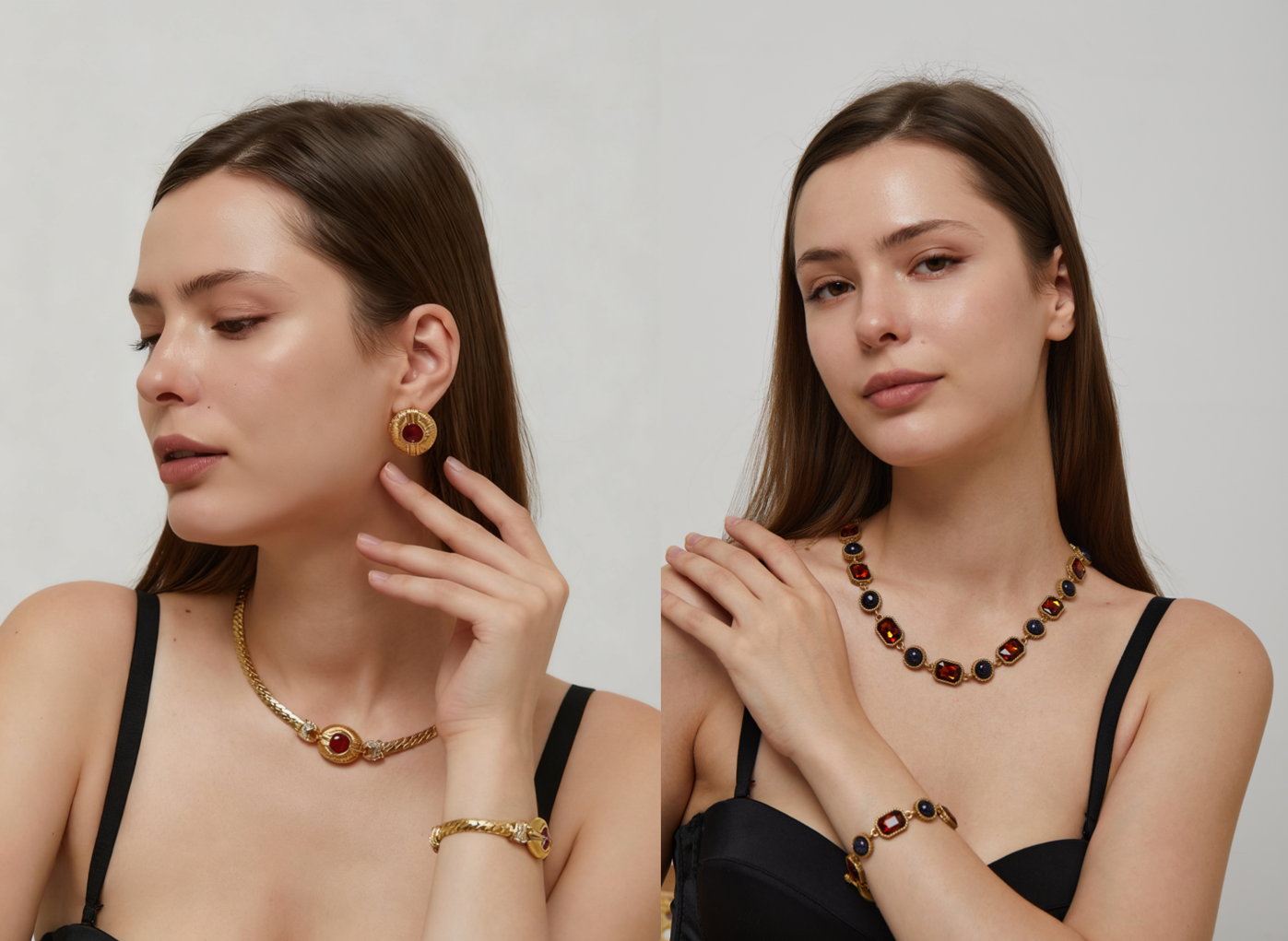 Vintage Red Zircon Copper Jewelry Necklace