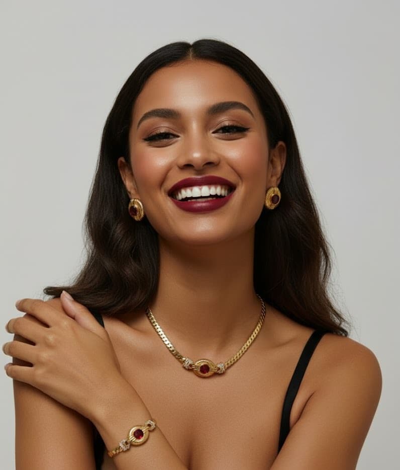 Are you hunting for a stunning gift for the remarkable woman in your life? Your search ends here—this Vintage Red Zircon & Copper Jewelry Set is the elegant, distinctive choice you’ve been seeking. It’s more than a gift; it’s a timeless treasure she’ll adore for years to come.